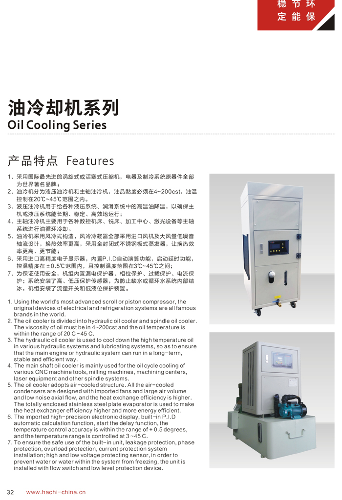 1、制冷能力是在環(huán)境溫度35℃,進油溫度35℃,出油溫度30℃,油品為ISO VG32條件下測得。 2、用戶在選擇油冷機時,必須選擇油液需控制的溫度范圍(1)18℃-25℃ (2)25℃-35℃ (3)35℃-45℃